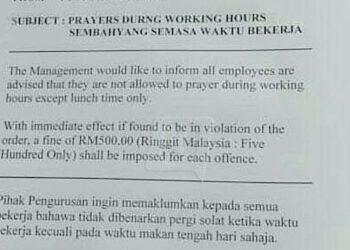 Larangan solat :Kilang nafi keluarkan memo arahan