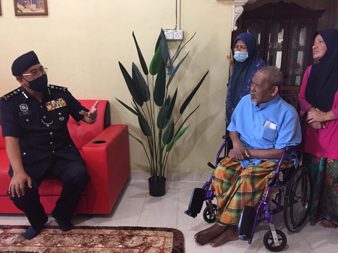 Terdahulu beliau turun padang menyampaikan bantuan dan menziarahi pesara polis Abdul Wahab Mat Seh, 74, yang diserang angin ahmar di Kampung Padang Sakar.