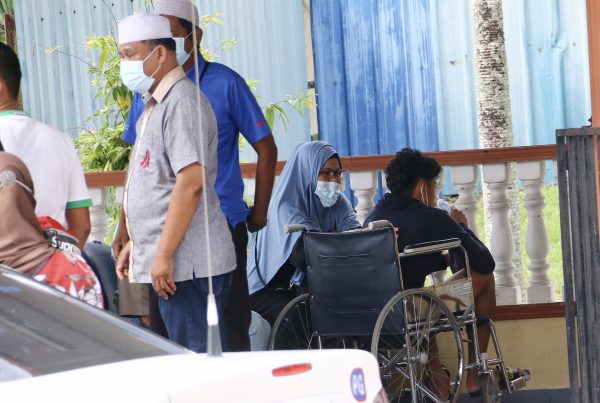 Di pekarangan unit forensik hospital berkenaan, Muhammad Syafiq cuba ditenangkan ahli keluarganya susulan kejadian tersebut. – UTUSAN ONLINE