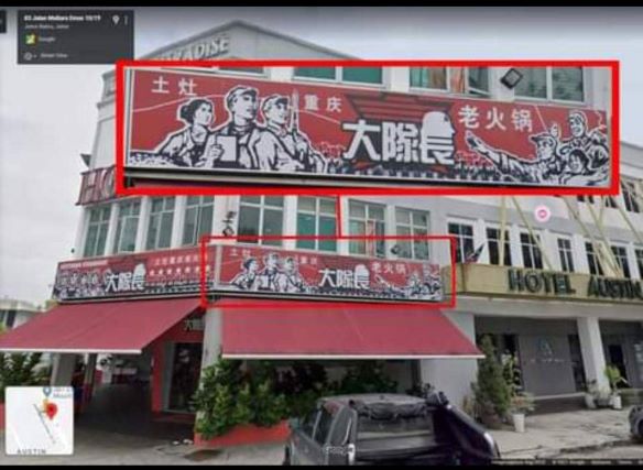 Semalam, beberapa keping gambar tular dalam media sosial menunjukkan sebuah restoran di Taman Mount Austin di sini memaparkan gambar berunsur parti komunis.