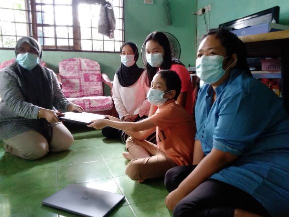 Rombongan turut disertai Pengerusi Persatuan Cina Muslim Malaysia (MACMA) cawangan Kelantan, Dr Johari Yap menyampaikan sumbangan dua set komputer riba kepada anak-anak Kim Keok bagi memudahkan mereka mengikuti Pengajaran dan Pembelajaran di Rumah (PdPR). -UTUSAN ONLINE