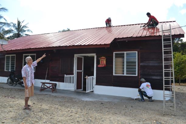 “Apabila berlaku ribut baru-baru ini, saya melihat dia naik sendiri untuk membaiki atap, bayangkan dia dah sudah tua dan mempunyai masalah kaki. Lantas, saya mengumpulkan tujuh orang sukarelawan kampung secara bergotong-royong untuk membaiki rumah berkenaan.
