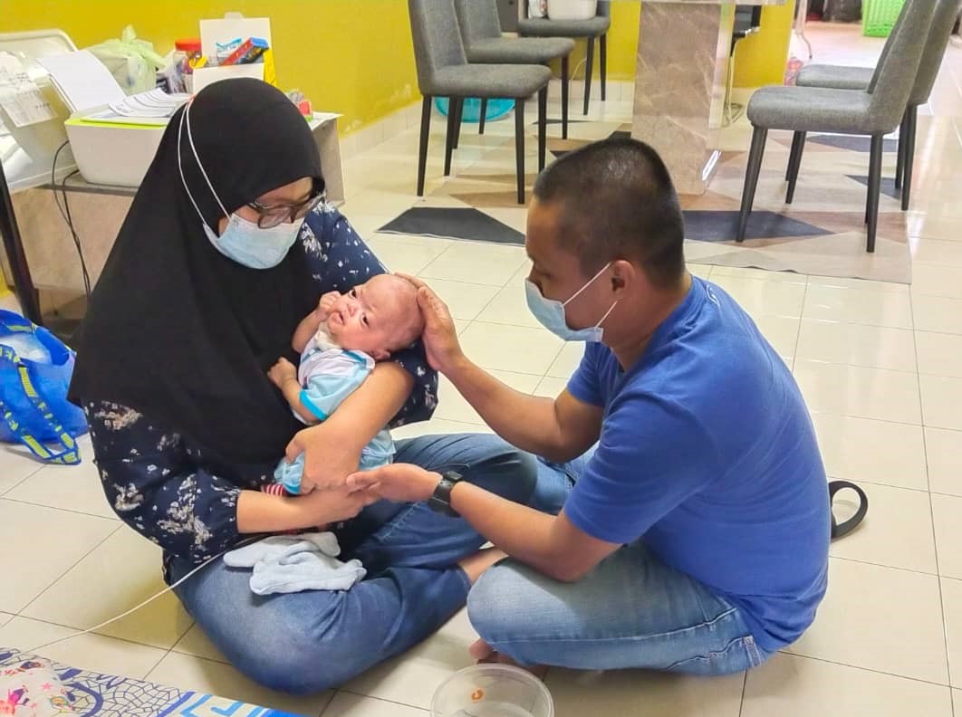 Lebih menyedihkan, bayi comel yang merupakan anak bongsu daripada empat adik beradik itu menangis tanpa suara sebaliknya hanya air mata yang keluar disebabkan tiub yang disambungkan.