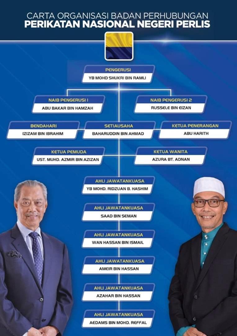 Setiausaha Bersatu negeri, Izizam Ibrahim pula dilantik sebagai Bendahari PN Perlis manakala Baharuddin Ahmad dari Pas memegang jawatan Setiausaha PN negeri.