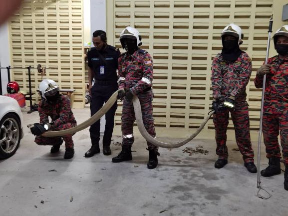 “Menurut pengadu, dia menyedari kewujudan ular tersebut ketika hendak menggunakan tandas di rumahnya sebelum terus membuat panggilan kecemasan.