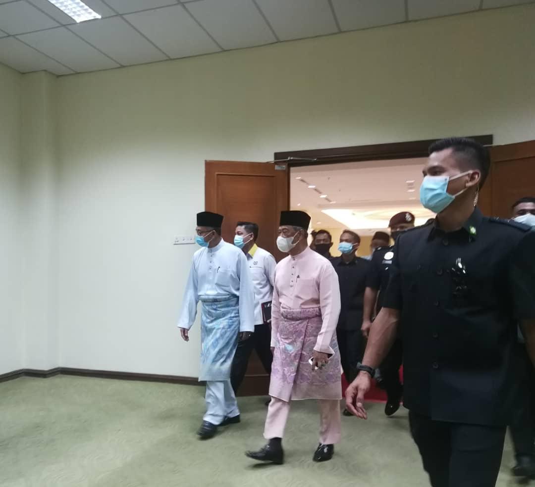 Sejurus selepas pemeriksaan suhu dan sesi bacaan doa, kedua-dua pemimpin tersebut melakukan perjumpaan kira-kira 30 minit di pejabat Menteri Besar.