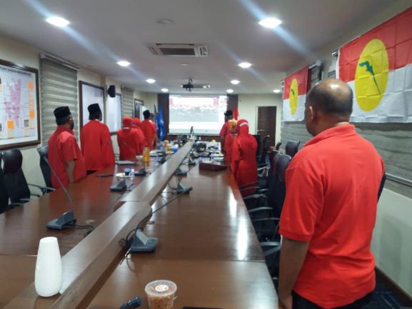 LUMUT: Seramai tujuh perwakilan Umno Bahagian Lumut diketuai Setiausaha Bahagian, Mohd. Shahril Yahaya, hari ini mengikuti lintas langsung secara maya Perhimpunan Agung UMNO 2020 dari Bilik Gerakan Barisan Nasional (BN) di Seri Manjung di sini hari ini.