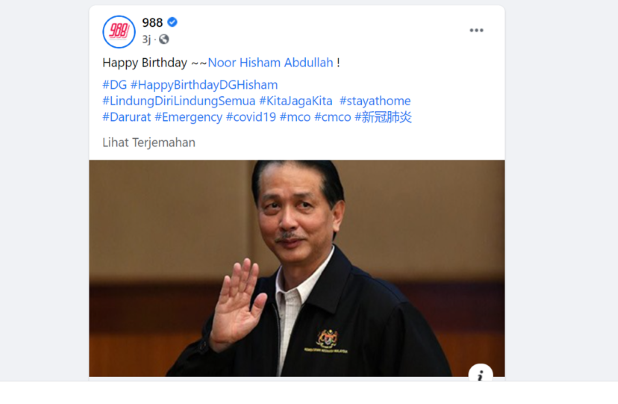Itu antara ucapan pengguna media sosial sempena hari lahir Ketua Pengarah Kesihatan, Tan Sri Dr. Noor Hisham Abdullah yang ke-58 pada hari ini.