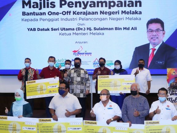Ketua Menteri Melaka, Datuk Seri Sulaiman Md. Ali berkata, bantuan secara sekali bayar (one-off) itu merangkumi pemberian RM1,000 kepada 120 pengusaha Agensi Kembara Pelancongan Negeri Melaka, RM2,000 kepada sembilan pengusaha inap desa dan RM1,500 kepada 67 pengusaha chalet bumiputera.