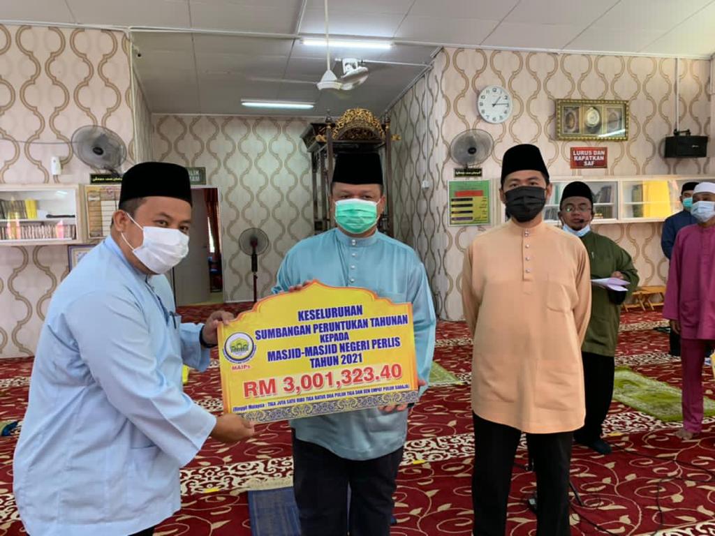 PADANG BESAR: Sebanyak RM3,001,323 diperuntukkan Majlis Agama Islam dan Adat Istiadat Melayu Perlis (MAIPs) untuk disalurkan kepada masjid di seluruh negeri ini tahun ini.