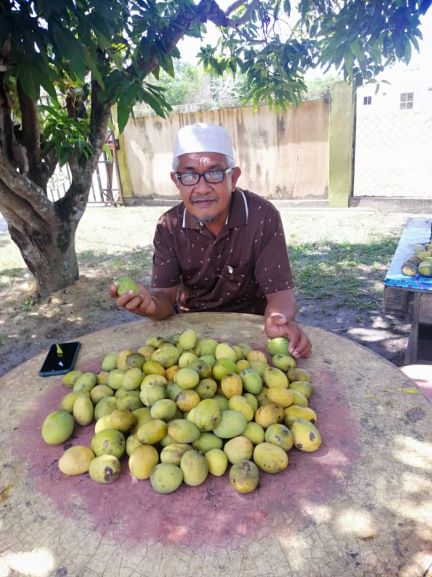 SETIU: Sejak 25 tahun menanam pokok mangga telur di halaman rumahnya di Kampung Pandan Jaya di Rhu 10, Penarik di sini, seorang pesara polis tidak lokek untuk berkongsi hasil buah-buahan tersebut dengan penduduk setempat.