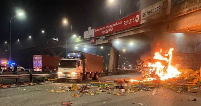 Tambahnya, seorang lagi penumpang lori yang merupakan anak kepada pemandu lori yang berusia, V. Dharshaan 16, berjaya keluar sebelum lori terbakar dan mengalami kecederaan di kepala dan kaki dihantar ke wad kecemasan Hospital Tuanku Ja’afar (HTJ) Seremban untuk rawatan lanjut.