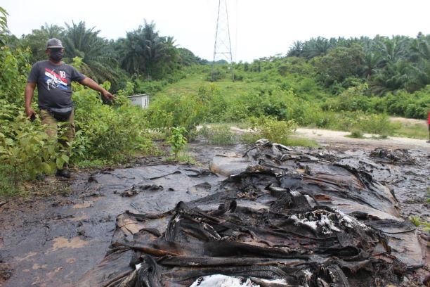 Kolam tersebut terletak berdekatan lokasi pembuangan sisa tersebut yang dipercayai merupakan sisa sawit.