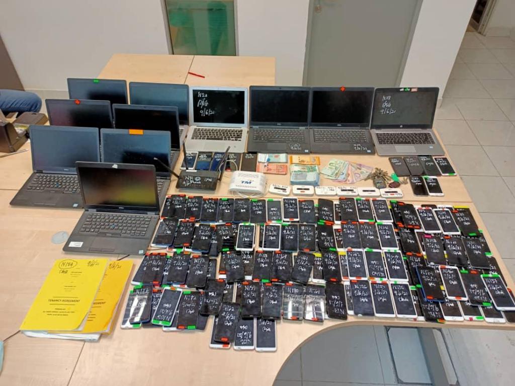 “Dalam serbuan itu, kita merampas pelbagai barangan antaranya 195 telefon bimbit, 11 komputer riba, enam router, dua modem internet, dua unit tablet dan tiga kenderaan,” katanya dalam satu kenyataan di sini, hari ini.