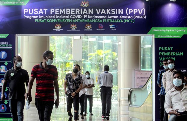 PUTRAJAYA: Sejumlah 370 pekerja industri diberi suntikan vaksin Covid-19 pada hari pertama operasi Pusat Pemberian Vaksin Industri (PPVIN) di Pusat Konvensyen Antarabangsa Putrajaya (PICC), di sini hari ini.