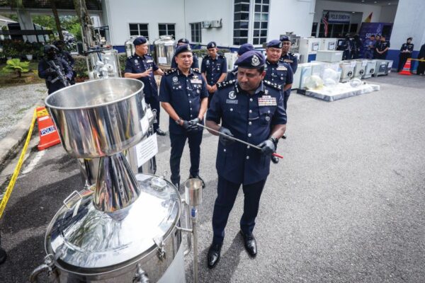 KOTA KINABALU: Selepas menelan seekor anak kambing, seekor ular sawa sepanjang 12 kaki ditemukan kekenyangan di sebuah kandang kambing di Kampung Suasa, Beaufort, hari ini.