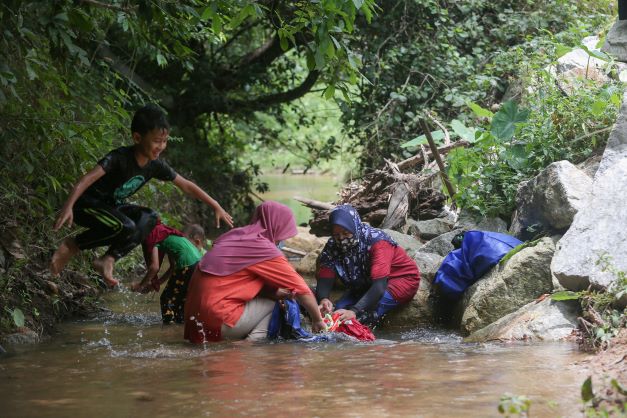 “Saya mempunyai lima anak dan ibu bapa yang tinggal bersama, jadi baju-baju kotor kami banyak, mujurlah air sungai ini bersih jadi dapatlah saya menumpang membasuh pakaian di sini.