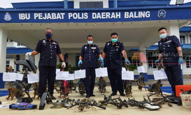 Menurut beliau, hasil soal siasat ke atas semua suspek terlibat, polis merampas barang kes iaitu komponen motosikal curi di kawasan paya belukar di belakang sebuah rumah di Kampung Simpang Carok Kangar.