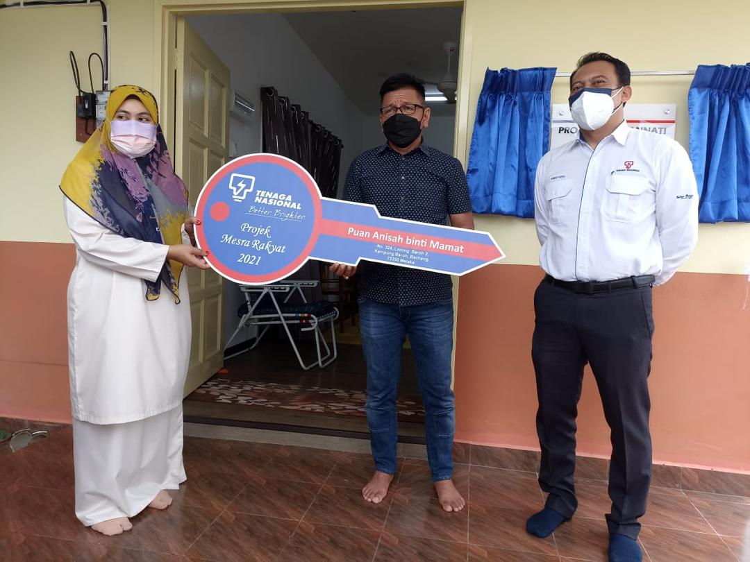 Turut hadir menyerahkan rumah tersebut ialah Ahli Dewan Undangan Negeri (ADUN) Pengkalan Batu, Datuk Norhizam Hassan Baktee dan Pengurus TNB Melaka, Ahmad Fadhil Aziz.