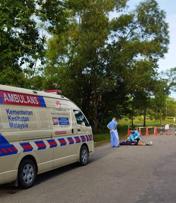 Dalam kejadian kira-kira pukul 6.30 pagi itu, mangsa Hasmin Usup,55, dipercayai rebah secara tiba-tiba dan orang awam yang menyedari kejadian itu terus membuat panggilan kecemasan di talian 999.
