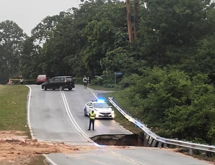 “Difahamkan, kejadian tanah runtuh tersebut ekoran hujan lebat yang berlaku semalam. Hasil siasatan awal mendapati, jalan yang runtuh ialah jalan menghala daripada Jimah ke Sendayan.
