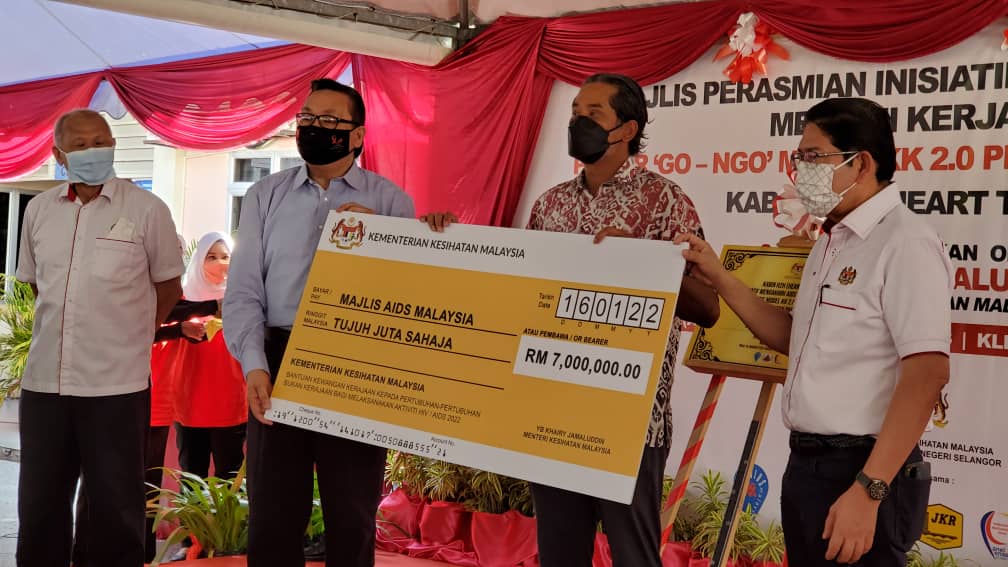 “KKM menyalurkan peruntukan kepada Majlis AIDS Malaysia sebanyak lebih RM170 juta sejak penubuhannya. Pada hari ini, saya menyerahkan sumbangan kerajaan sebanyak RM7 juta bagi melaksanakan program pencegahan HIV komprehensif oleh NGO bagi tahun 2022.