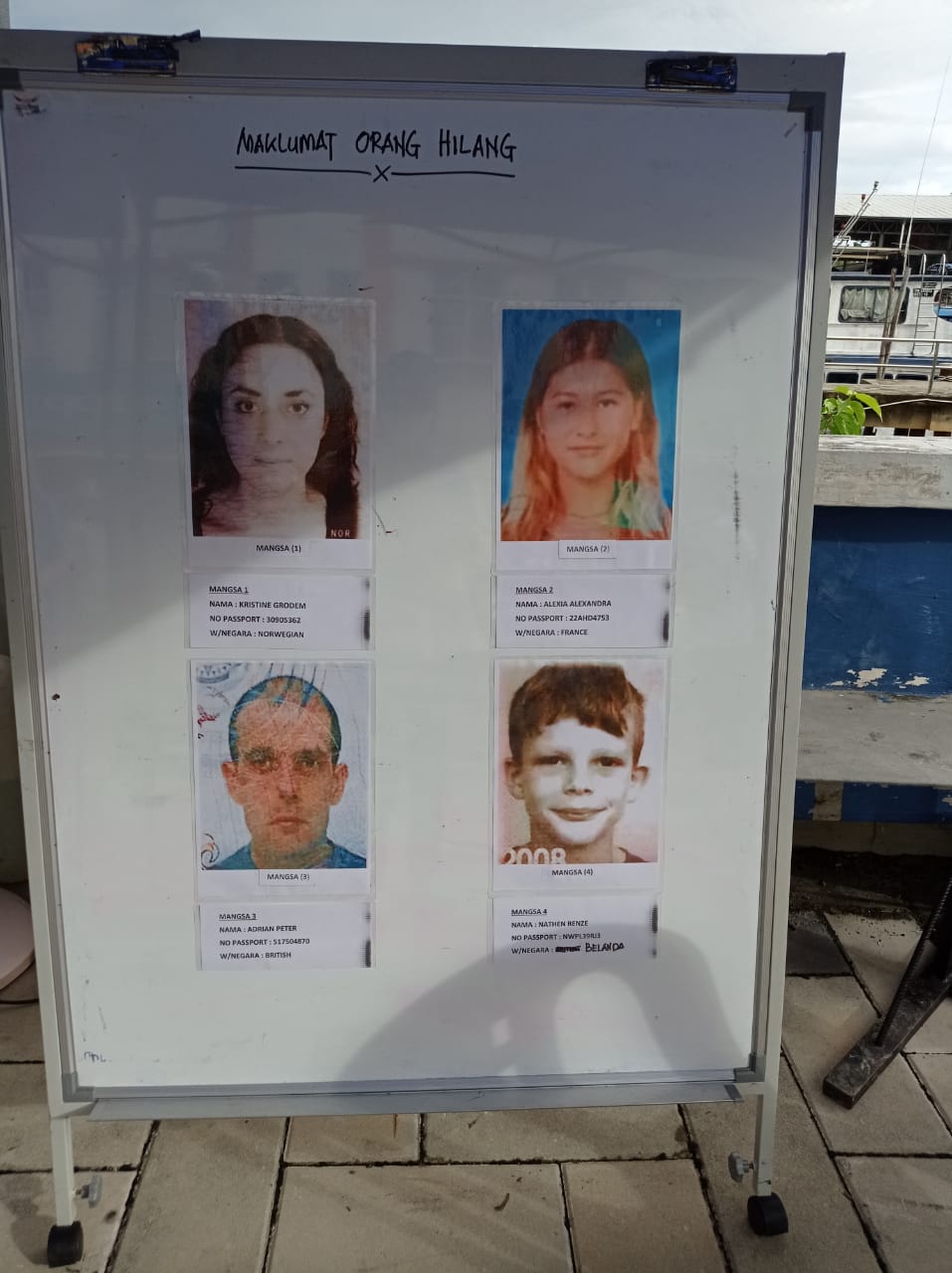 Tiga lagi mangsa yang masih hilang ialah Alexia Alexandria, 18 (Perancis), Adrian Peter, 46, (Britain) dan anak lelakinya, Nathen Renze, 14 (Belanda).