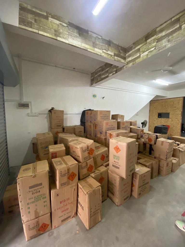 “Pemeriksaan lanjut di dalam premis berkenaan telah membawa kepada penemuan 81 kotak dan 21 guni berisi pelbagai jenis mercun.