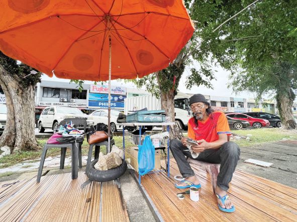 KANGAR: Melalui jalan besar menuju ke Arau, di sebelah kiri jalan berhampiran bulatan Jubli Emas di sini, mata pastinya akan tertumpu ke arah kelibat seorang lelaki tekun membaiki kasut para pelanggannya.