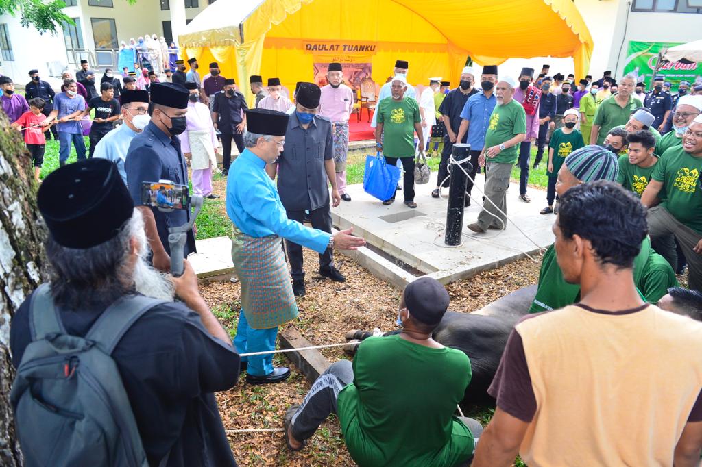 Selesai mengerjakan solat sunat, Al-Sultan bersama Pemangku Raja Pahang, turut berkenan menunaikan ibadah korban di masjid itu.