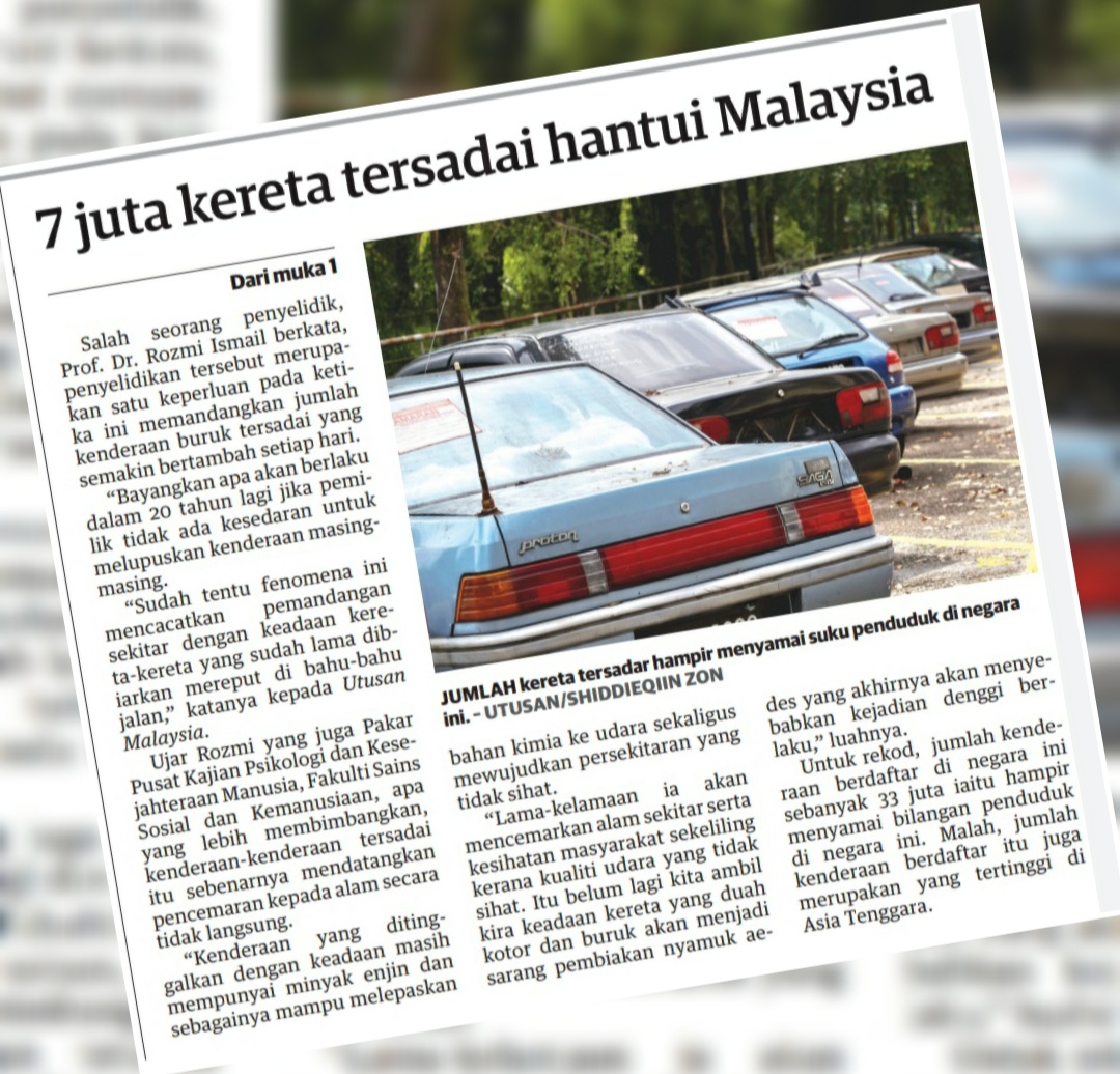 Seorang penyelidiknya, Prof. Dr. Rozmi Ismail berkata, kenderaan-kenderaan tersadai itu berisiko mencemarkan alam sekitar kerana masih mempunyai minyak enjin dan sebagainya selain menjadi sarang pembiakan nyamuk Aedes.
