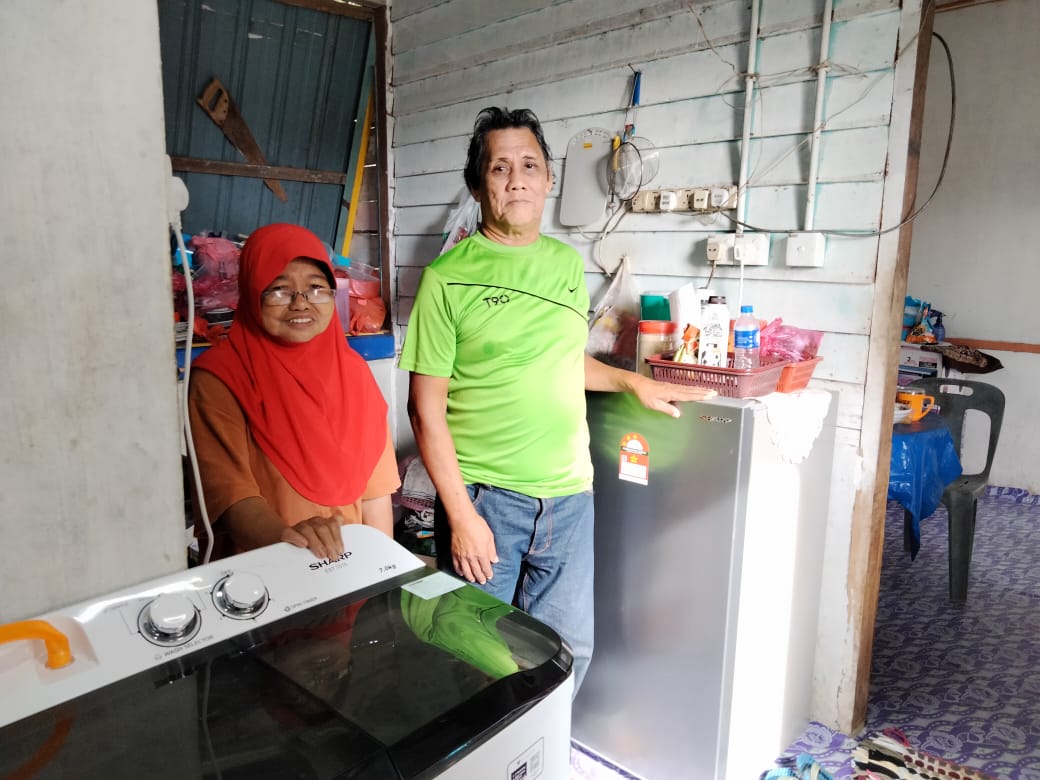 Sumbangan berupa sebuah mesin basuh, peti sejuk, tikar getah dan kabinet dapur memasak.