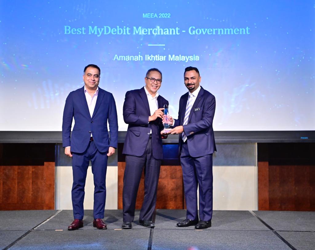KUALA LUMPUR: Amanah Ikhtiar Malaysia (AIM) sekali lagi dinobatkan sebagai pemenang Transaksi MyDebit Tertinggi (Sektor Kerajaan) sempena Anugerah Kecemerlangan e-Pembayaran Malaysia (MEEA) 2022 di sini, hari ini.