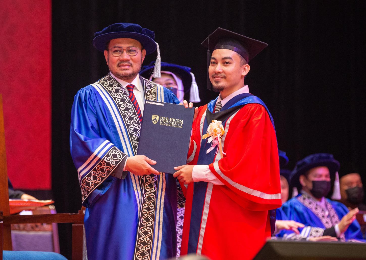 Ia dilaksanakan tiga sesi dengan penyampaian skrol kepada graduan sesi pertama disempurnakan Pengerusi Lembaga, Gabenor Datuk Seri Syed Faisal Albar manakala sesi kedua dan ketiga oleh Naib Canselor DRB Hicom U, Profesor Datuk Sr. Dr. Omar Osman.