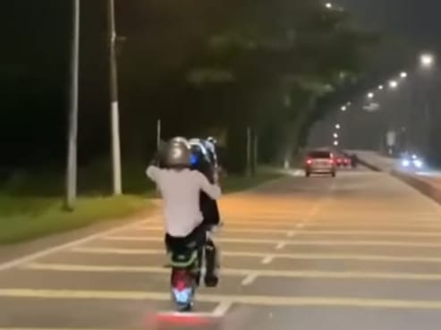 “Satu kiriman video dari Facebook ‘Kluang paranormal research’ dikesan memaparkan seorang lelaki Pakistan menunggang sebuah motosikal jenis SYM VF3i melakukan aksi ‘wheelie’ dengan mengangkat tayar hadapan motosikal.