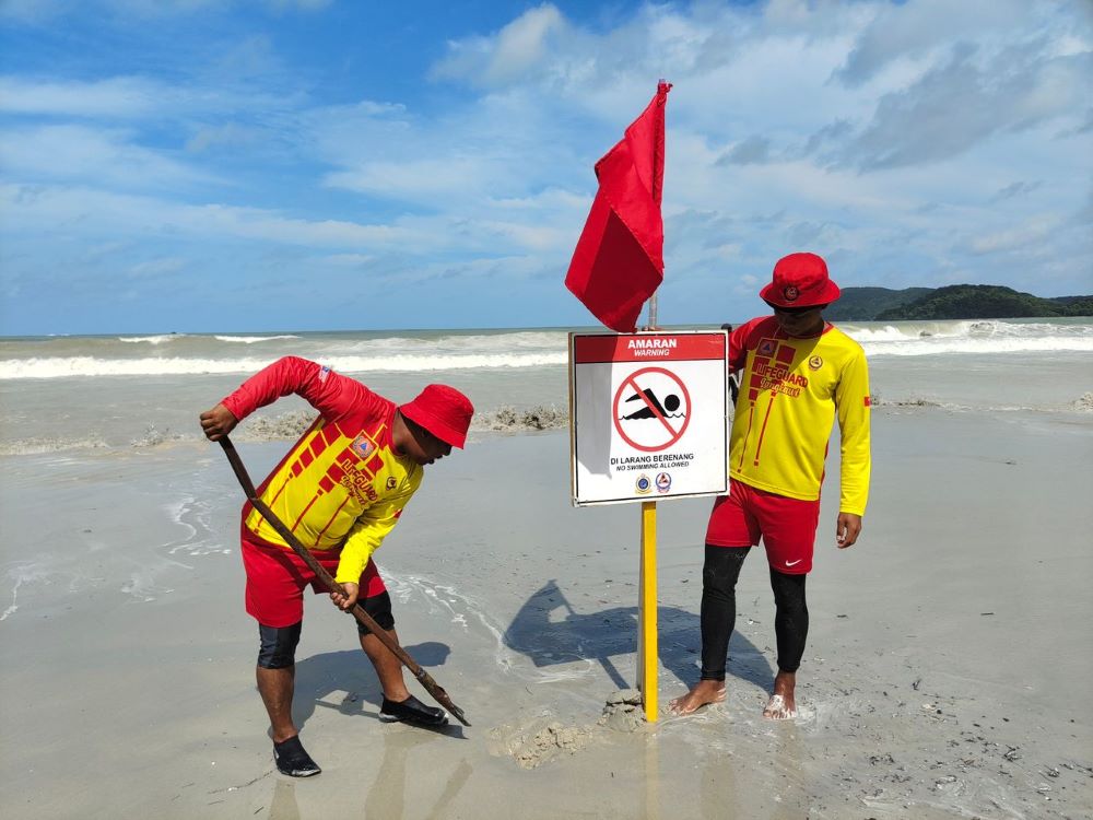 “Bendera tersebut bersama papan tanda dilarang berenang akan dinaikkan sehingga cuaca kembali pulih.