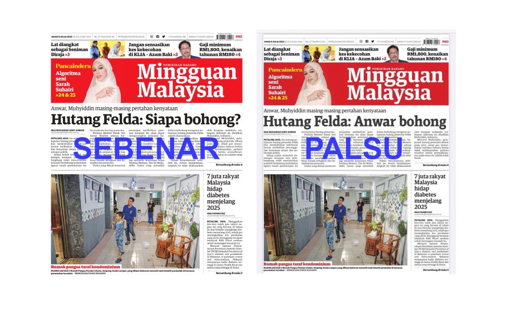 Muka depan akhbar Mingguan Malaysia yang sebenarnya memaparkan ‘Hutang Felda: Siapa bohong?’ merujuk kepada kenyataan Perdana Menteri, Datuk Seri Anwar Ibrahim dan bekas Perdana Menteri, Tan Sri Muhyiddin Yassin.