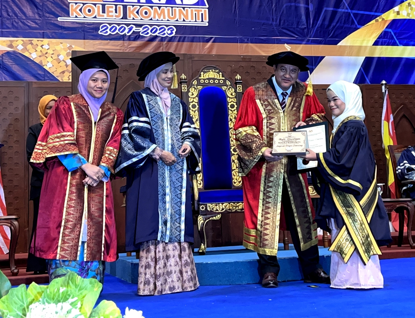 SEREMBAN: SEORANG graduan orang kurang upaya (OKU) kerdil, Engku Intan Baizira Engku Maleki, 23, dipilih sebagai penerima Anugerah Graduan Cemerlang Kolej Komuniti Negeri Johor sempena Majlis Konvokesyen Komemoratif Kolej Komuniti yang diadakan di Universiti Sains Islam Malaysia (USIM), Nilai dekat sini hari ini.
