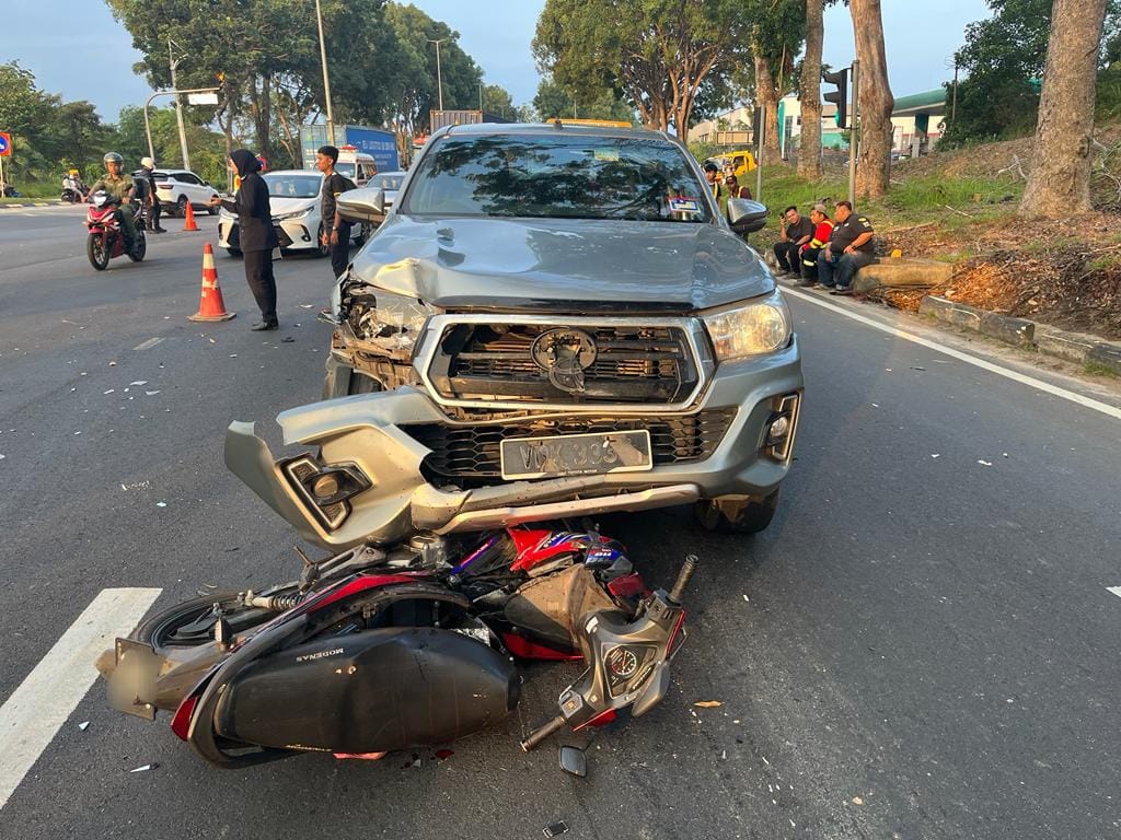 “Kedua-dua pasangan tersebut beralamat di Parit Raja, Batu Pahat manakala pemandu Toyota Hilux yang beralamat di Gemas, Negeri Sembilan dan berusia 71 tahun tidak mengalami sebarang kecederaan.