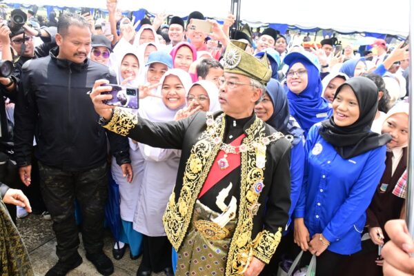 Baginda berdua kemudian berkenan bersalaman perpisahan dengan tetamu kehormat dan rakyat sebelum meneruskan perjalanan ke Dewan Jubli Perak Sultan Ahmad Shah. – UTUSAN