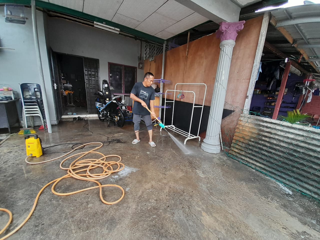 “Hari ini walaupun ada hujan juga tetapi cuaca agak baik kerana hujan hanya sekejap sahaja jadi boleh ambil kesempatan bersihkan apa yang patut di rumah.