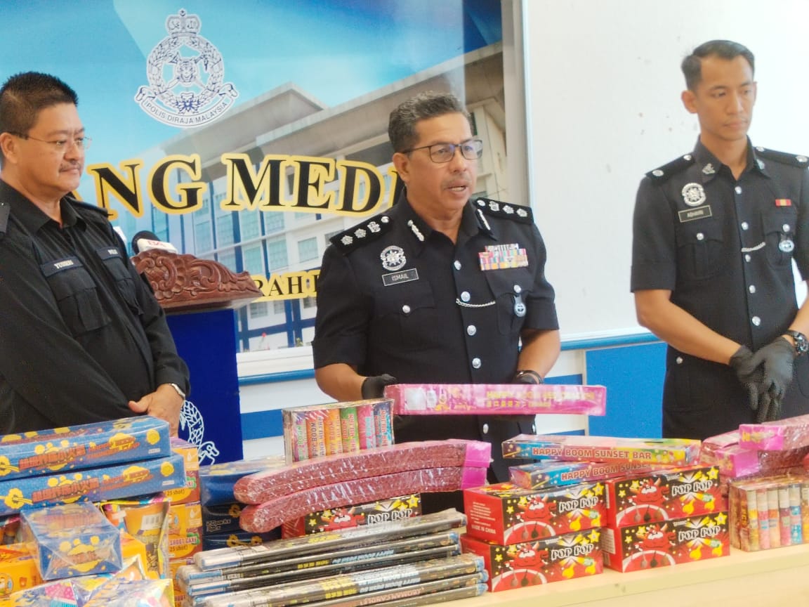 BATU PAHAT: Polis merampas pelbagai jenis mercun dan bunga api yang dianggarkan bernilai RM212,000 di sebuah rumah kosong di Taman Harmoni, Parit Sulong, dekat sini pukul 12.10 tengah malam, semalam. Ketua Polis Daerah Batu Pahat, Asisten Komisioner Ismail Dollah berkata, rumah berkenaan yang tiada bekalan air dan elektrik dipercayai dijadikan stor bagi menyimpan 193 kotak mercun serta bunga api terbabit sebelum dipasarkan dalam pasaran tempatan. Pihaknya kini masih mengesan pemilik…
