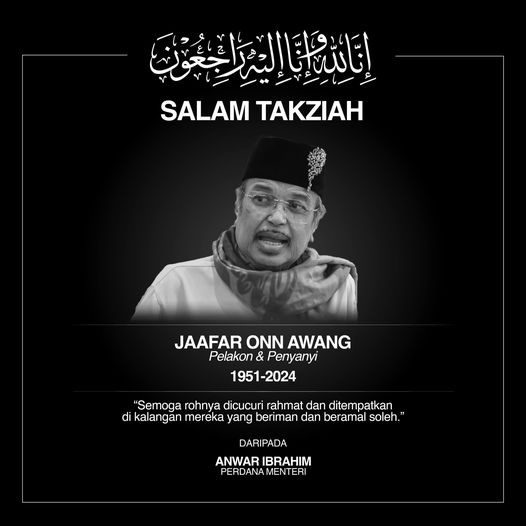 PETALING JAYA: Berita pemergian pelakon dan pengacara veteran, Jaafar Onn meninggalkan kesan kepada industri hiburan tanah air. Perdana Menteri, Datuk Seri Anwar Ibrahim berkata, Allahyarham sentiasa menghiburkan masyarakat dengan bakatnya yang unik dan tersendiri dalam bidang lakonan dan muzik. Anwar kemudian merakamkan ucapan takziah kepada keluarga tokoh penghibur tanah air itu yang telah menyahut panggilan ilahi hari ini. “Kepada kita yang mengikuti dunia hiburan, pasti terkesan dengan berita ini tatkala…