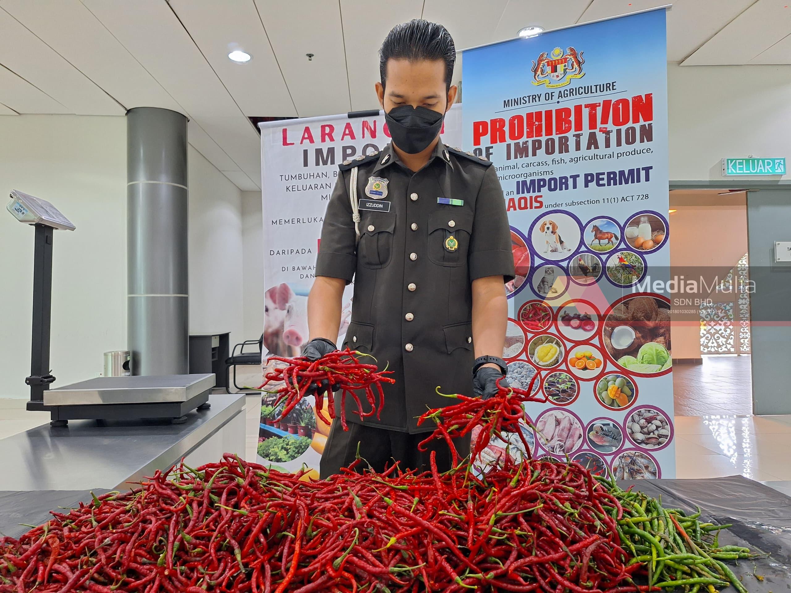 MELAKA: Jabatan Perkhidmatan Kuarantin dan Pemeriksaan Malaysia (Maqis) menggagalkan cubaan membawa masuk puluhan kilogram cili segar tanpa permit dari Indonesia, Selasa lalu. Pengarah Maqis Melaka, Nora Dinah Abdul Rahman berkata, perbuatan itu dikesan semasa pemeriksaan penumpang di Terminal Feri Antarabangsa Kompleks Imigresen, Kastam, Kuarantin dan Keselamatan (ICQS) Melaka, Kota Laksamana di sini. Katanya, pihaknya bertindak merampas cili berkenaan untuk dilupuskan. “Maqis telah menahan kemasukan hasil pertanian iaitu cili segar ke…