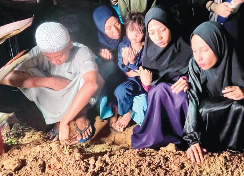 YAN: Suasana pilu menyelubungi majlis pengebumian Allahyarham Bintara Muda Noor Rahiza Anuar apabila anak bongsu arwah tidak henti-henti memanggil ‘mama’ di tepi pusara ibunya di Tanah Perkuburan Islam Masjid Haji Nyak Gam, Kampung Ruat, di sini. Nur Qistina Afia Mohd Azinor, 6, yang menangis teresak-esak ketika memanggil ibunya itu turut mengundang sebak orang ramai yang berada di sekitar tanah perkuburan itu. Malah, kelihatan beberapa ahli keluarga cuba menenangkan kanak-kanak itu…