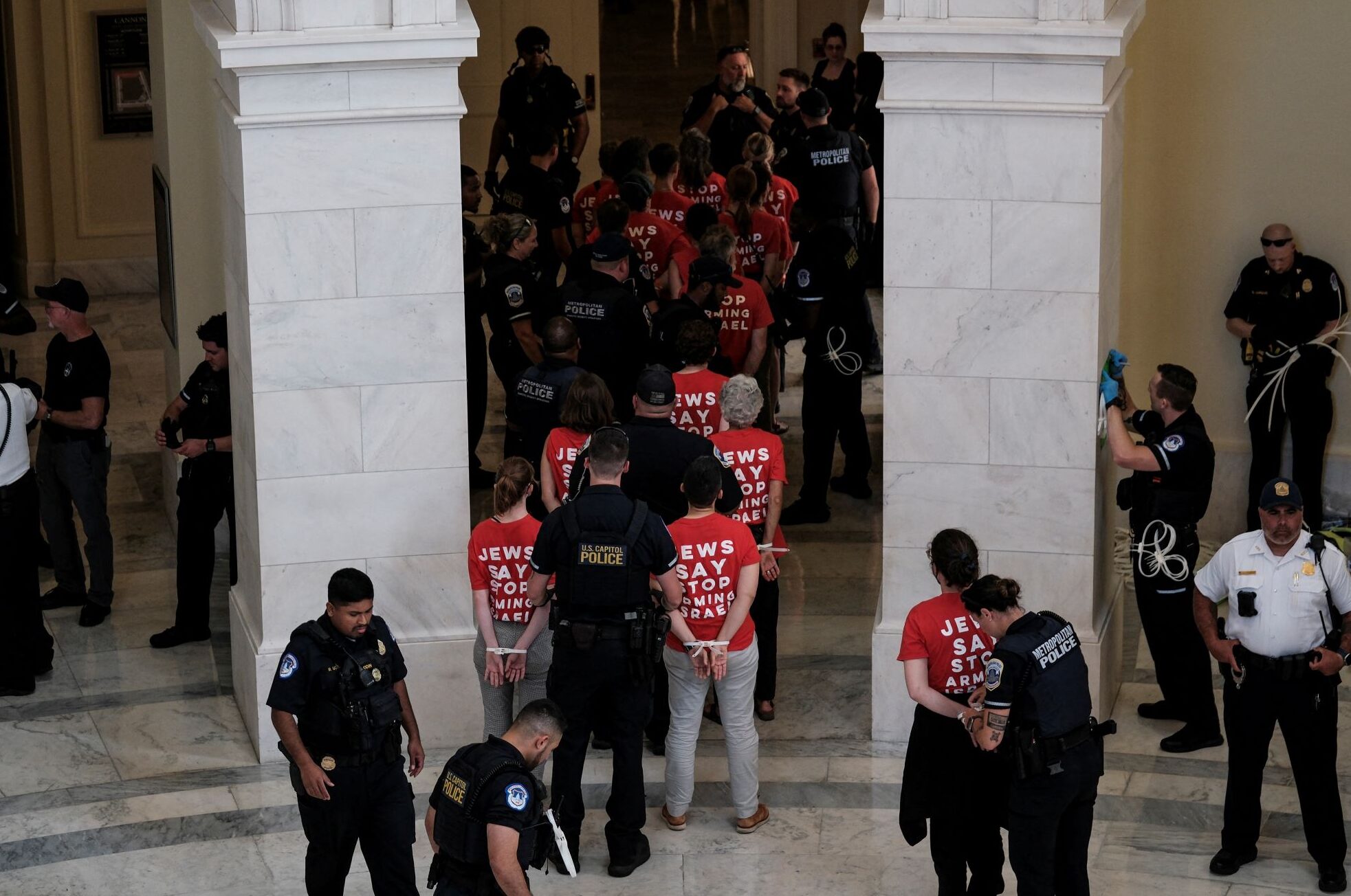 WASHINGTON: Polis Capitol Amerika Syarikat (AS) menahan aktivis Yahudi yang mengadakan protes untuk membantah sokongan Washington terhadap Israel di dalam bangunan Kongres, di Capitol Hill semalam. Protes yang dianjurkan kumpulan aktivis anti-Zionis, Jewish Voice for Peace (JVP), diadakan sehari sebelum Perdana Menteri Israel, Benjamin Netanyahu dijadualkan berucap kepada Kongres. Ratusan penunjuk perasaan mengadakan protes mengejut di Bangunan Cannon, bagi menggesa AS menghentikan penghantaran senjata ke Israel dan menentang pembunuhan beramai-ramai…