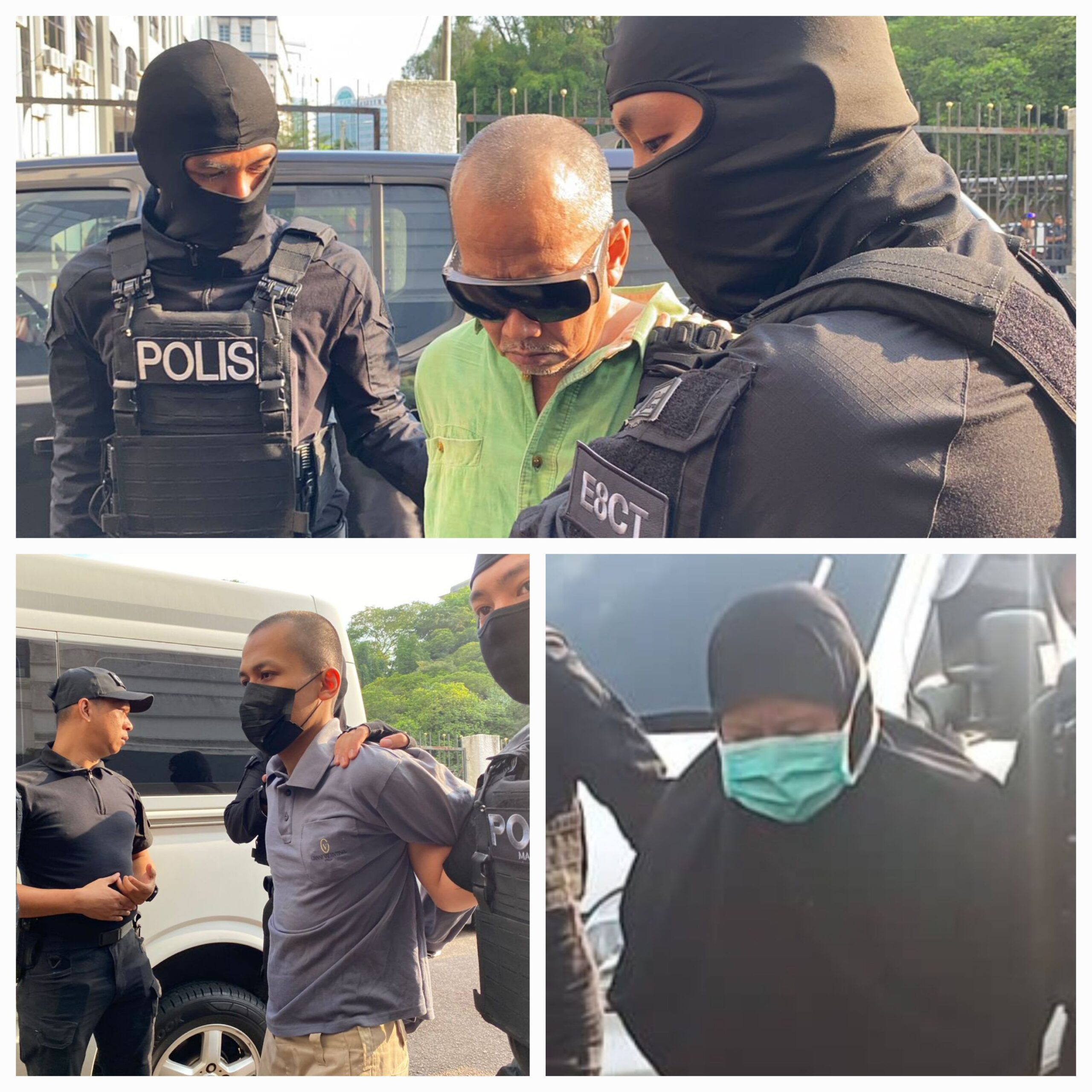 Sementara itu, kelima-lima suspek termasuk Radin Romyulah Radin Imran, 34, Rosna Jantan, 59, Farhah Sobrina Radin Imran, 32, dan Mariah Radin Imran, 19, tiba di pekarangan mahkamah pada pukul 8.40 pagi.