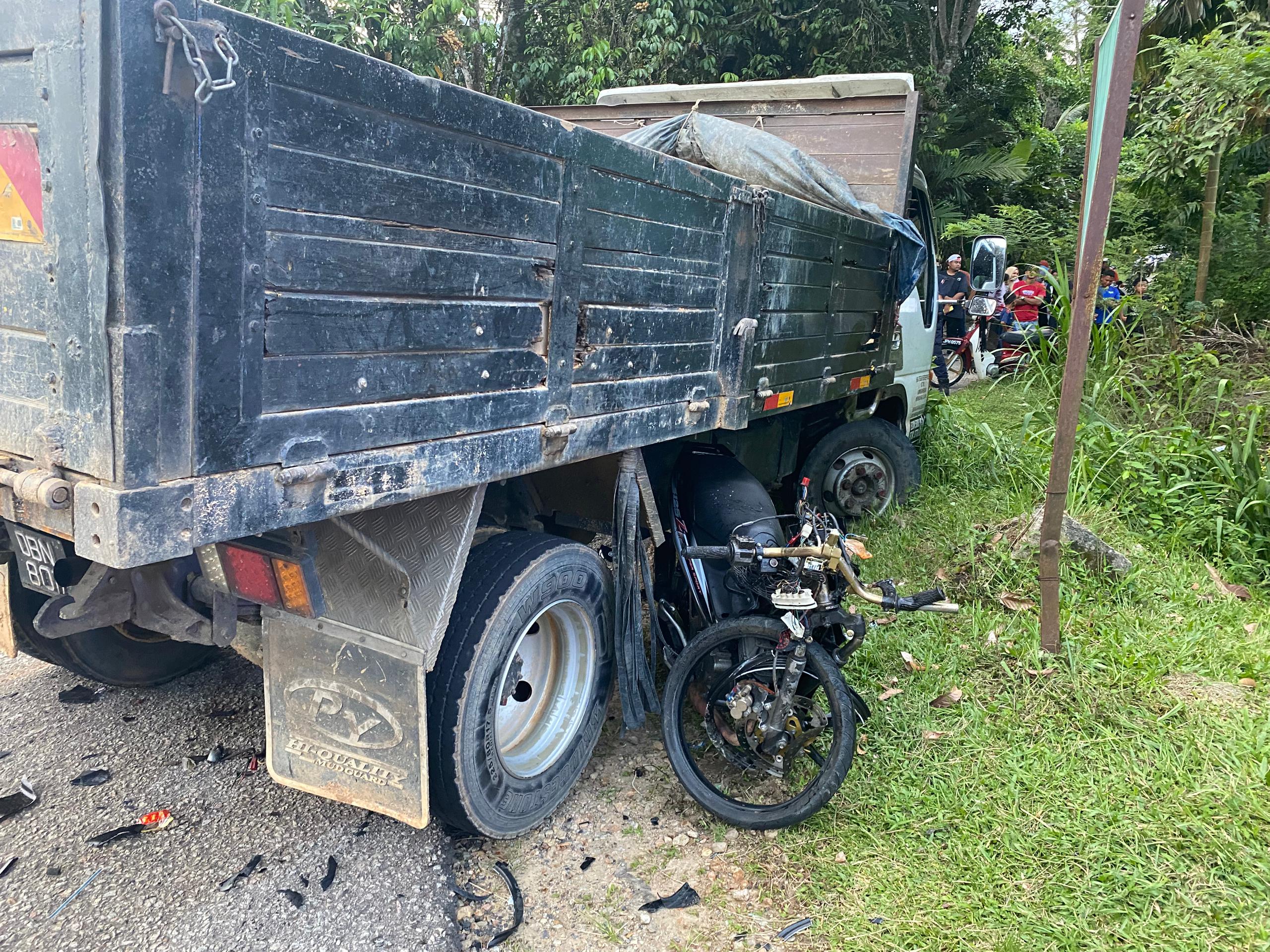 “Mangsa yang ketika itu cuba memotong lori tersebut telah merempuh bahagian kanan belakang kenderaan itu.