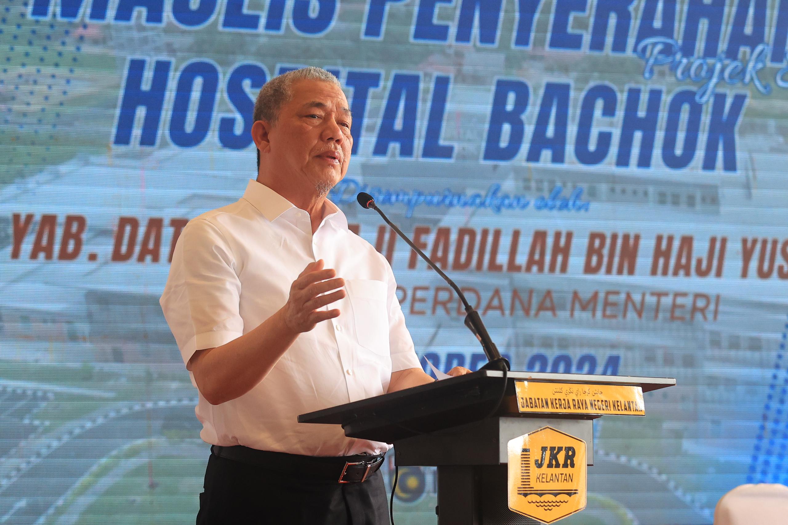 “Kerajaan ketika ini mahu menyelesaikan masalah melibatkan kontraktor dalam projek tersebut katanya semasa berucap pada Majlis Penyerahan Projek Siap Hospital Bachok di Hospital Bachok di sini hari ini.