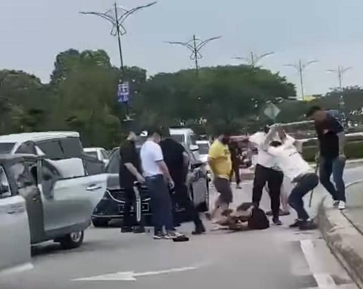 Terdahulu, tular video berdurasi 17 saat memaparkan lapan lelaki menyepak dan memukul seorang lelaki menggunakan batang dipercayai kayu di tepi jalan. – UTUSAN